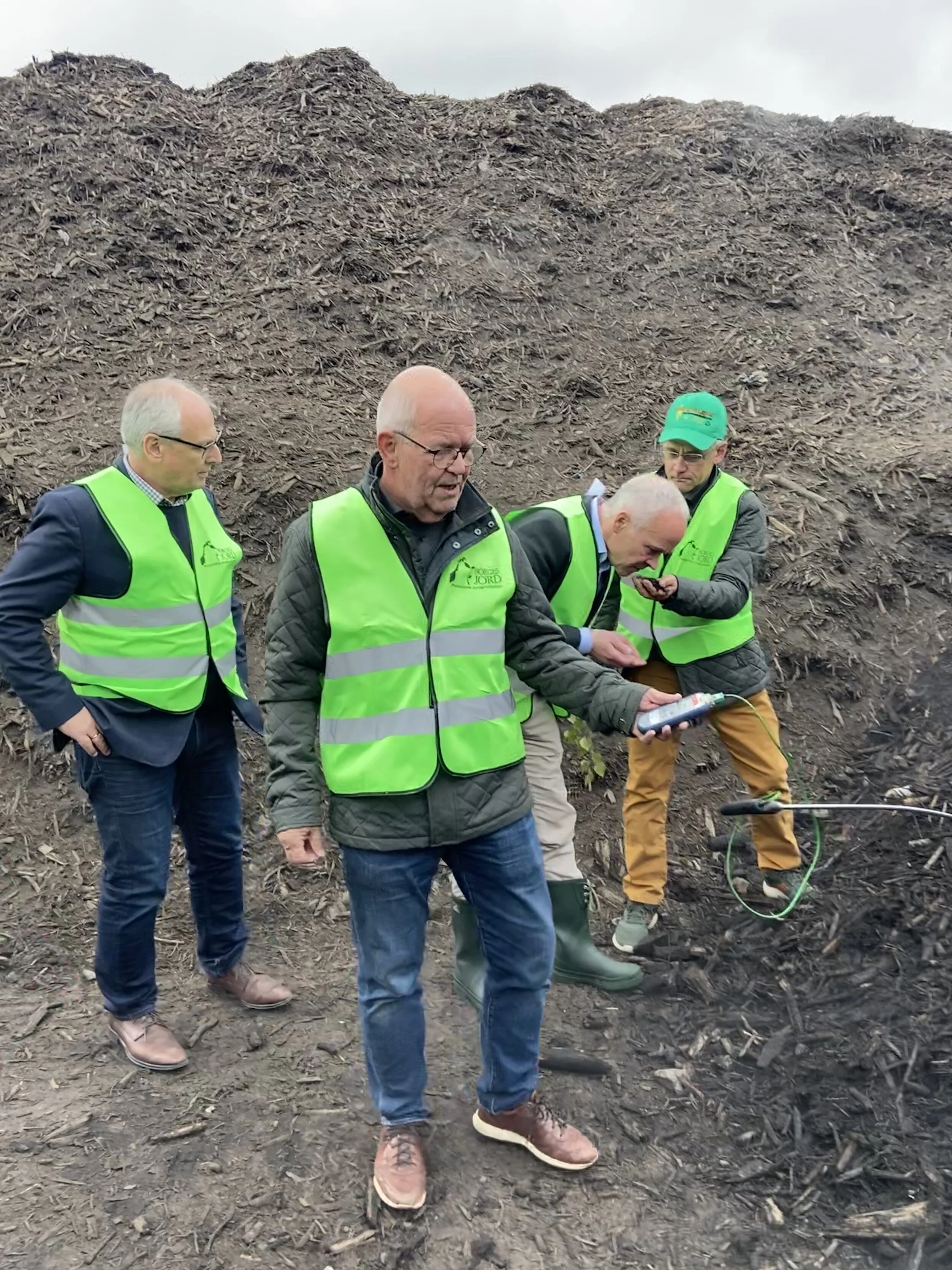 Midt mellom store velduftende komposteringsranker fortalte Tore D. Carlsen engasjert om hvordan kvernet park & hageavfall omgjøres til rå-kompost av ypperste kvalitet, kun en Oscar-verdig. Vi fikk alle både se-, ta- og lukte på komposten mens gravemaskinen ved siden av oss vendte den rykende ferske komposten. for å kontrollere temperaturen i ranken. Dette er helt nødvendig for å unngå varmgang i haugene og selvantennelse, noe gutta i Mysen fikk erfare for en drøy uke siden. Som Tore selv sa det med et glimt i øyet: